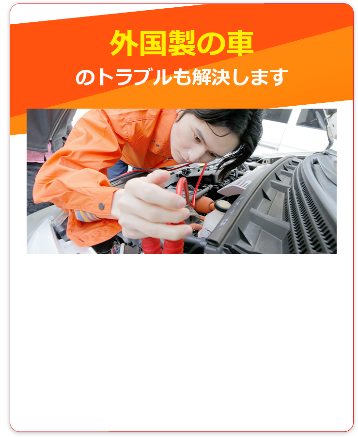 バッテリー上がりを助ける救済車は、バッテリーが上がった車と同じくらいの排気量であることが望ましいとされています。外国製の車は国産車に比べて排気量が大きい傾向にあるため、救済するのが難しいです。バッテリー110番はそんな外国車のバッテリー上がりも救済いたしますので0120-699-777までお電話ください。